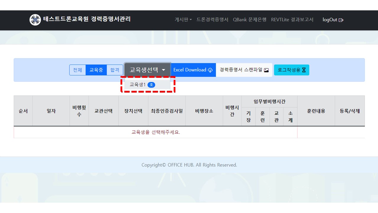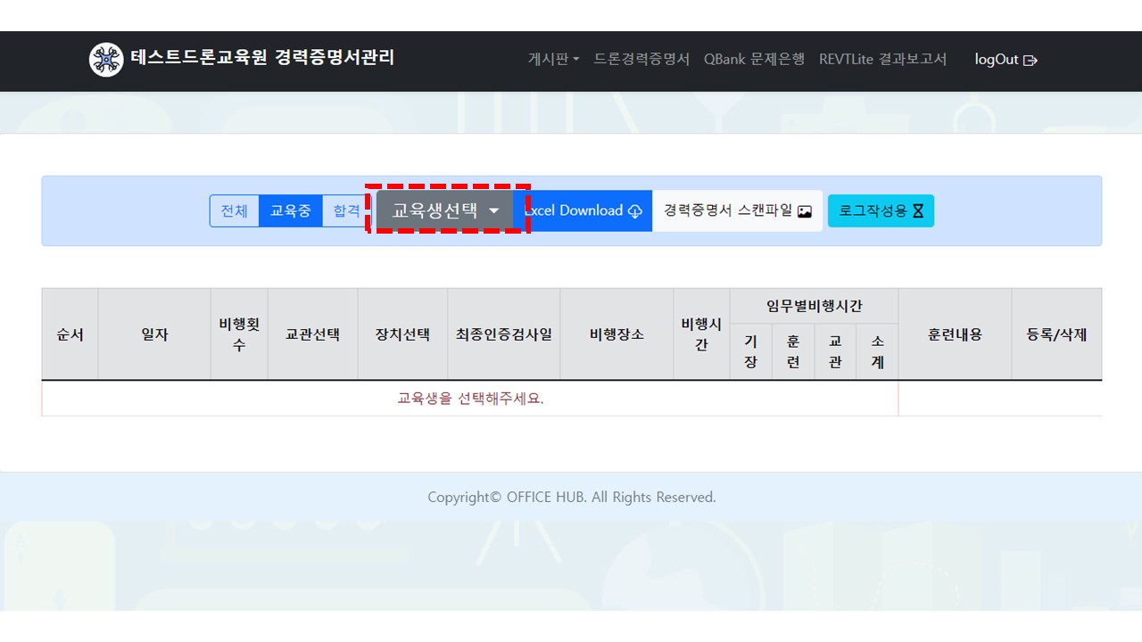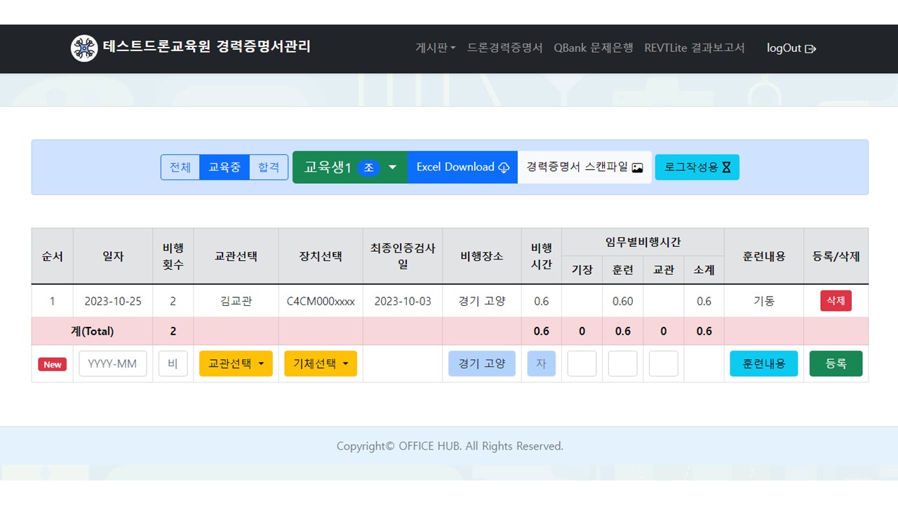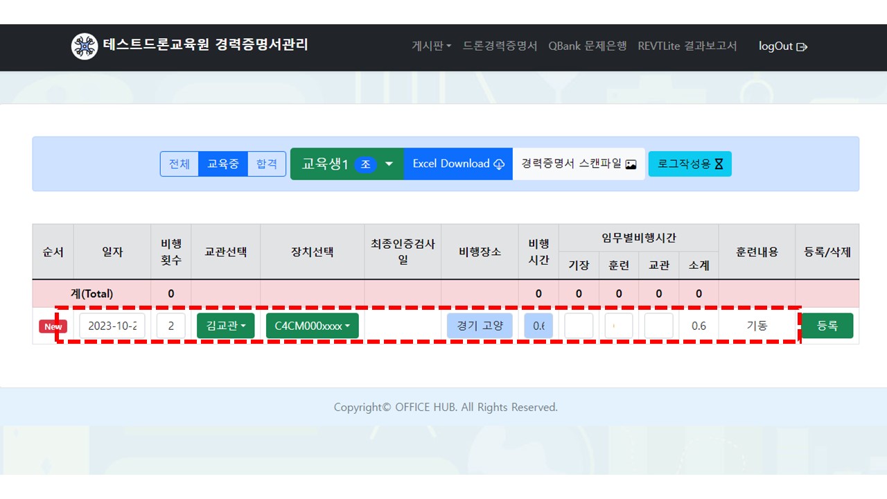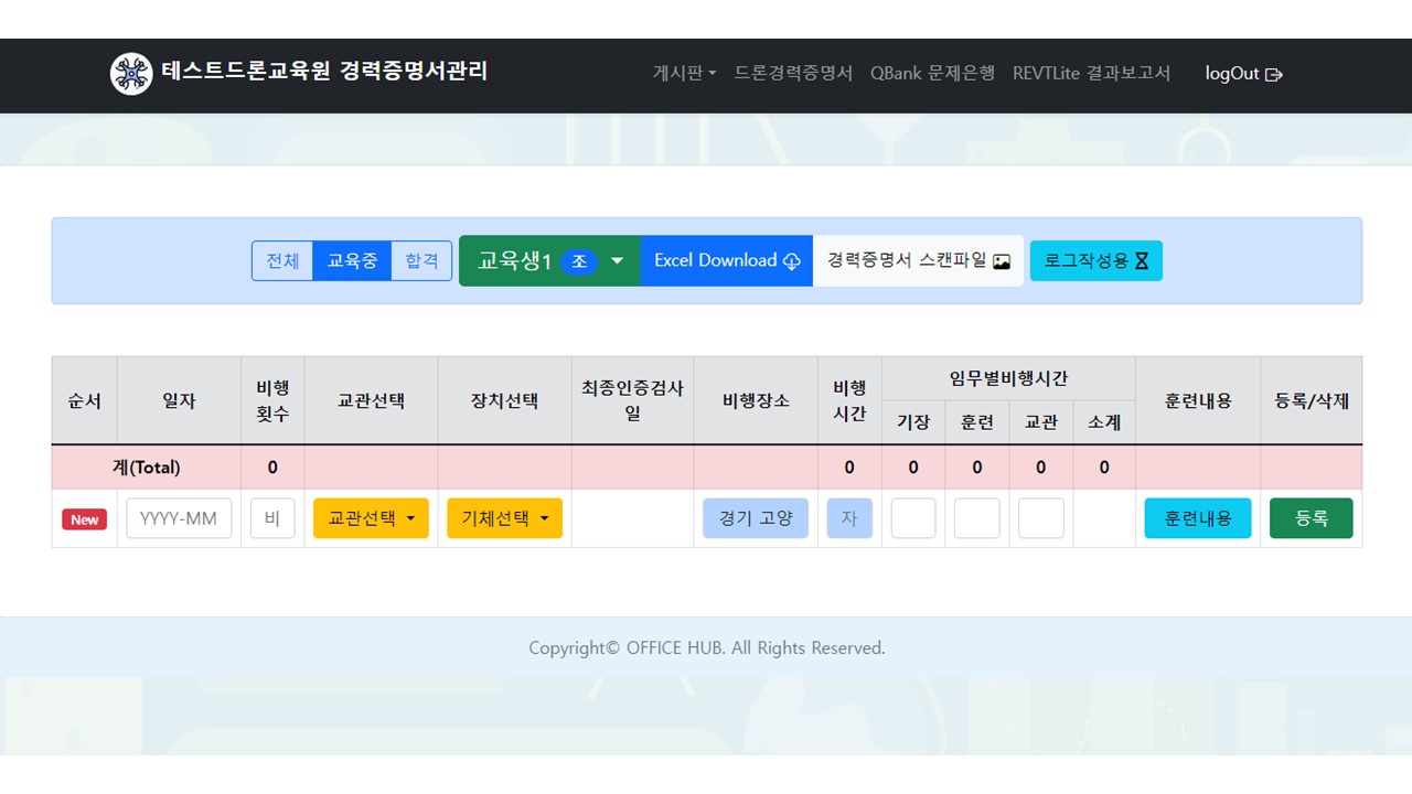 이제 설정은 모두 마쳤으니 교육생 비행 기록을 등록해 보겠습니다.